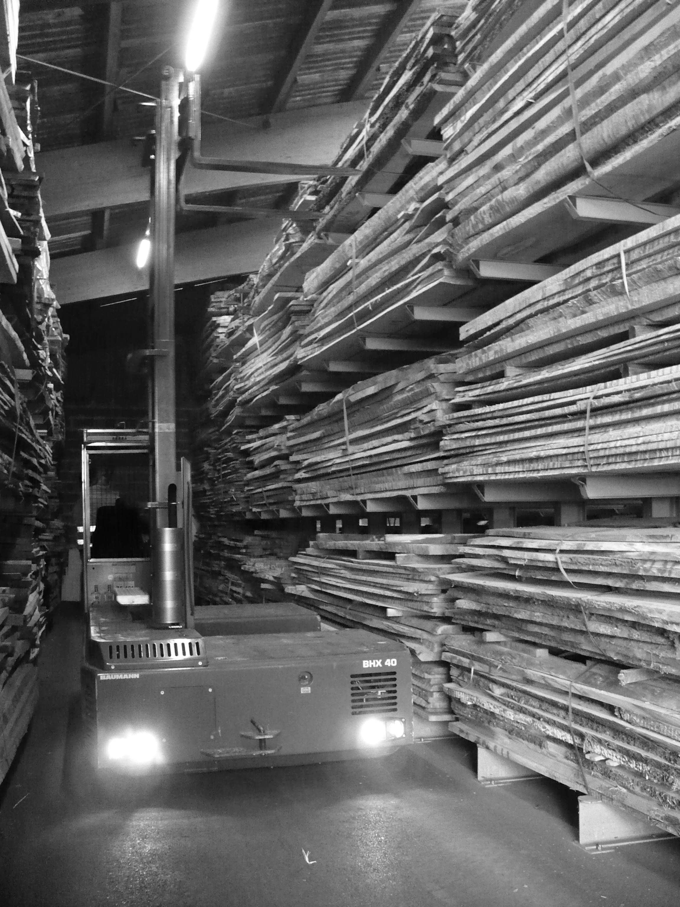 Wir beide kennen uns schon ca. 20 Jahre und unsere „Holzverbindung“ in dieser Zeit hat sich gewandelt. Er weiß, dass ich nicht jedes Brett bzw. jede Bohle mehr nehme. Er stellt mir seinen angestellten Schreiner zur Seite und wir machen uns gemeinsam auf die Suche nach den Bohlen, die ich mir vorstelle.