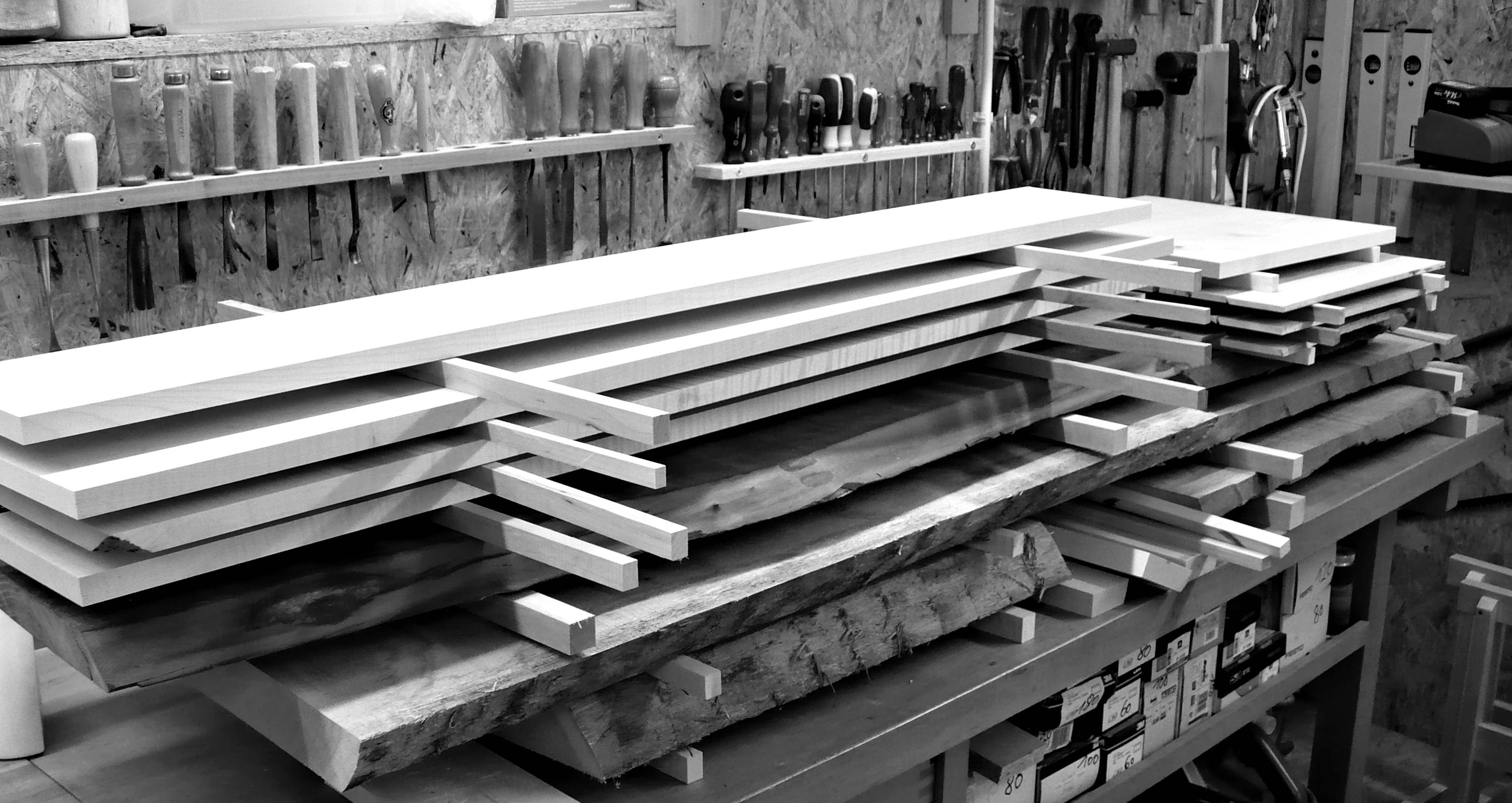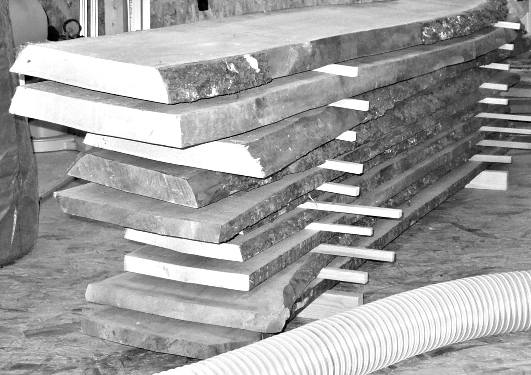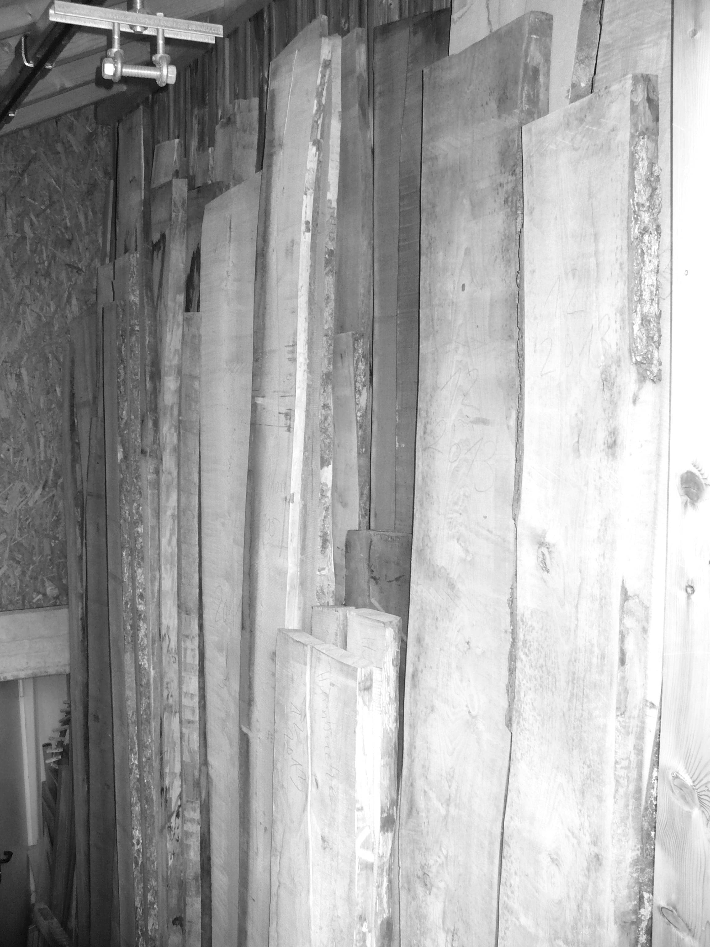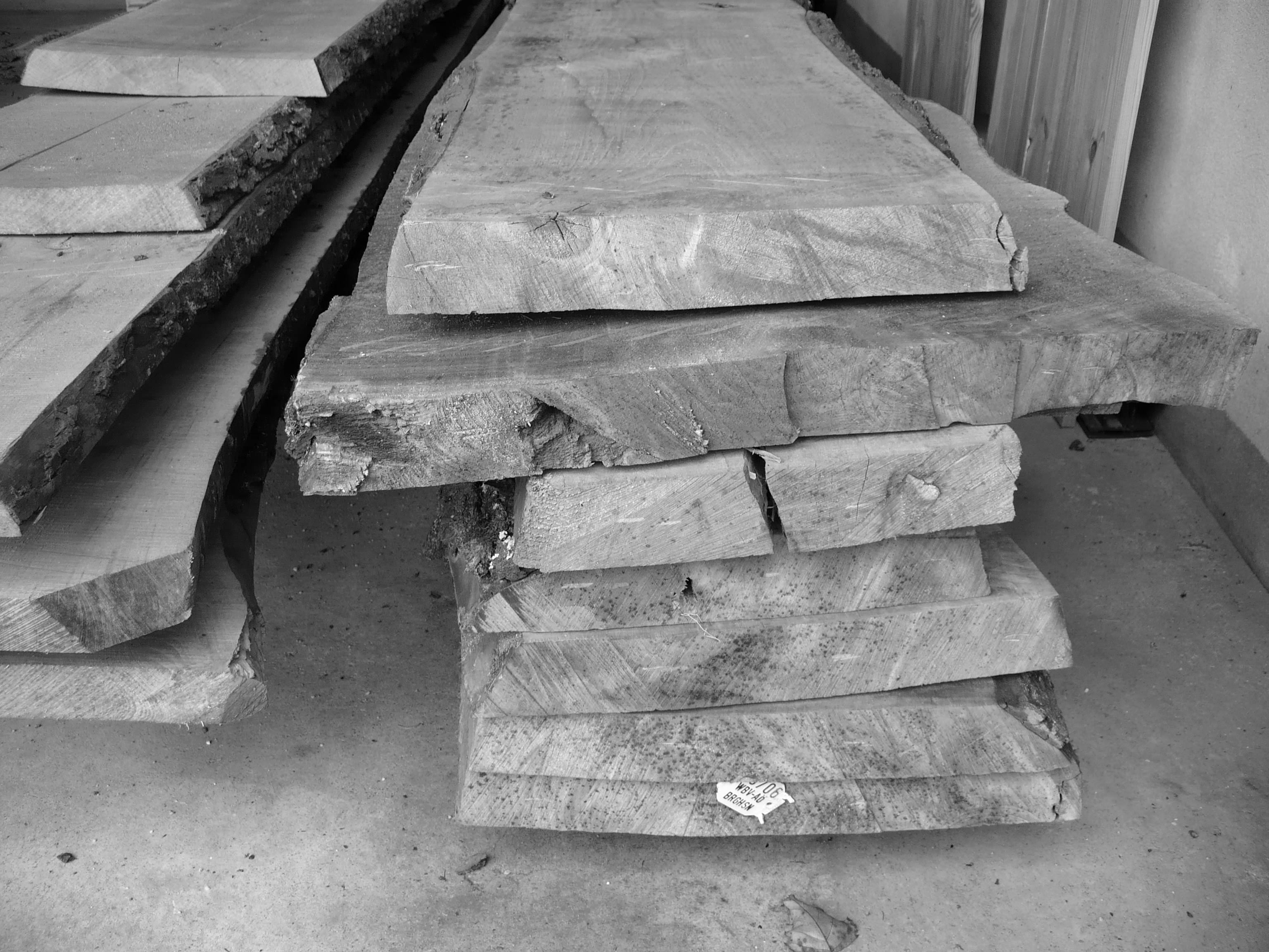 Meine Strategie, was den Holzerwerb angeht, hat sich in den vergangenen Jahren auch weiterentwickelt. Habe ich früher nur das bevorratet, was ich für ein Projekt benötigt habe, lege ich heute immer ein bis zwei Bohlen mehr auf die Seite. So sammeln sich im Laufe der Zeit hölzerne Kostbarkeiten an, die ich zusätzlich noch 2 bis 3 Jahre trocken lagere, bis mir ein geeignetes Holzprojekt dafür in den Sinn kommt.