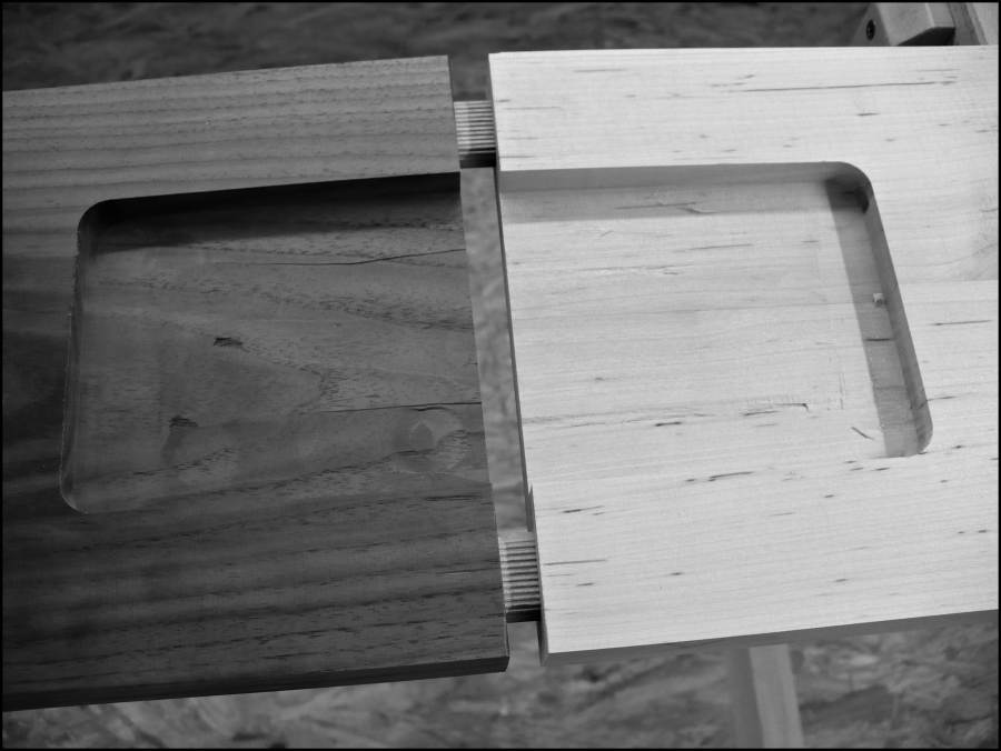 Die Eckverbindung und das anschließende Erlenbrett sind ausgefräst