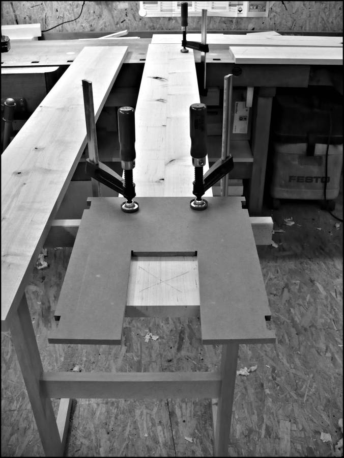 In alle 4 Seitenteile mussten die gleichen Inlayaussparungen gefräst werden wie in die Eckverbindungen. Dazu wurde die gleiche Schablone verwendet.