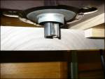 Man greift zum nächst besten Stück Abfallbrett und erstellt sich daraus die Schablone. Im gezeigten Fall handelt es sich um einen alten Regalboden aus Schichtholz 20 mm stark. Das Erstellen der Einzelteile und das Verleimen mit Dominodübel hat alles zusammen ca. 1 Stunde Zeit in Anspruch genommen. Die Schablone passt wunderbar auf die dafür vorgesehenen Bretter! Die Ernüchterung folgt dann aber beim Fräsen…