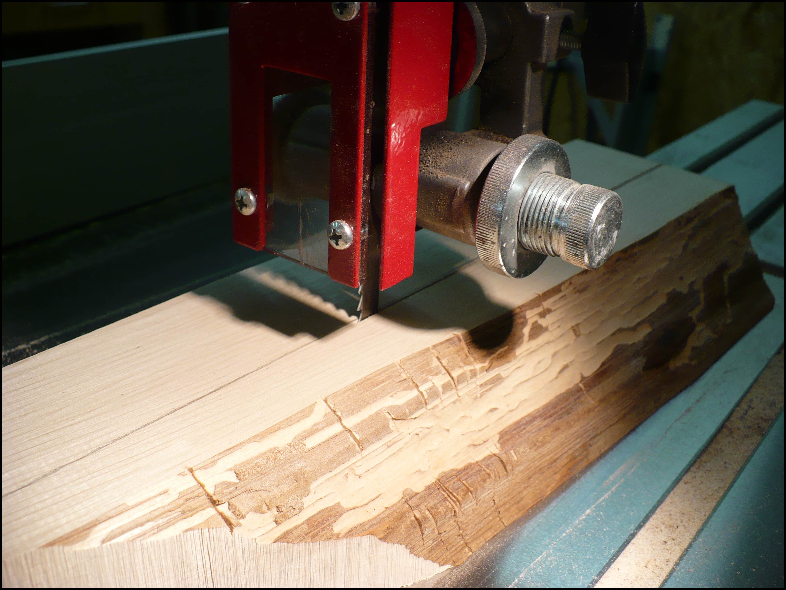 Rohlinge für die Halterung werden mit der Bandsäge ausgesägt