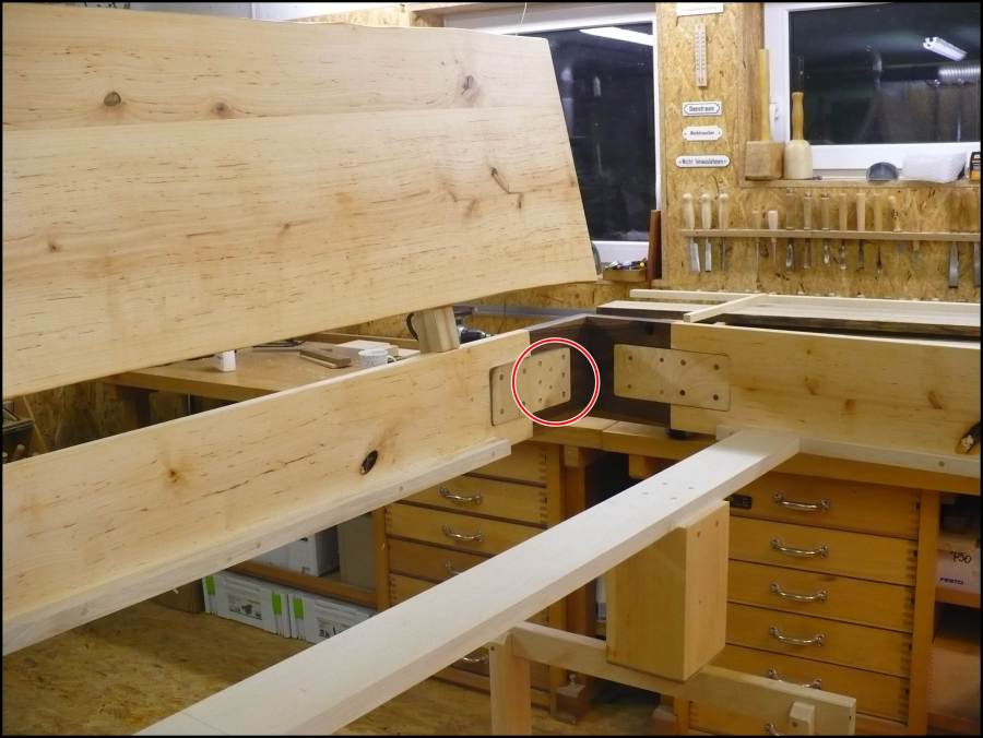 Hier wird deutlich wie die Eckverbindung gemacht wird. Auf eine Metalverbindung wurde verzichtet. Das Bett kann zerlegt werden.