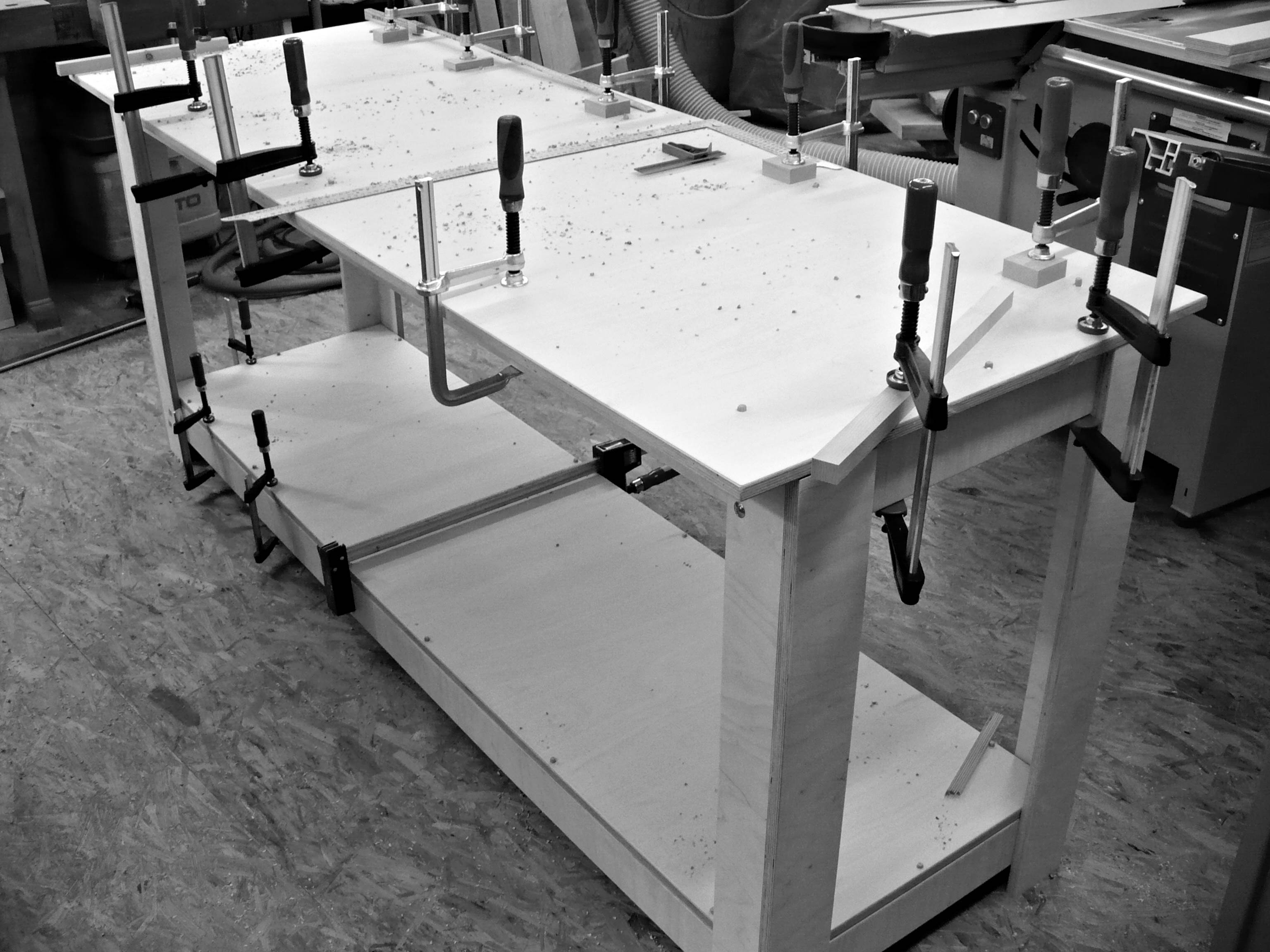 Auch das obere Tischbrett habe ich mit Holzdübel befestigt