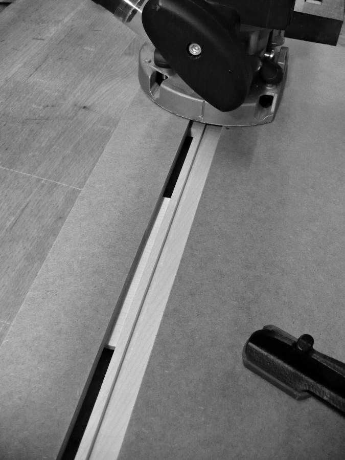 Eine 5mm Nut wird in die Schubladenseite gefräst zur Aufnahme für den Schubladenboden