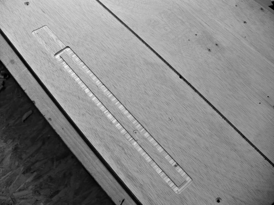 Wichtig: Will man unschöne Muster in der Werkbank vermeiden sollte man beim Schablonenfräsen ein altes Opferbrett unterlegen