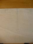 Mit einem Metall-Lineal zwischen zwei Holzklötzchen gespannt, kann eine gewünschte Rundung auf ein Brett übertragen werden. Von der Mitte ausgehend, zeichnet man die Breiten der Bretter auf der Schablone ein. Die Brettkannte (noch im rechten Winkel gehobelt) verlängert man. Den Winkel, der sich zwischen der Mittellinie und der verlängerten Kante ergibt, nimmt man mit der Schmiege ab und stellt den Seitenanschlag der Hobelmaschine darauf ein. Mit diesem Winkel muss man dann alle Bretter hobeln und verleimen.