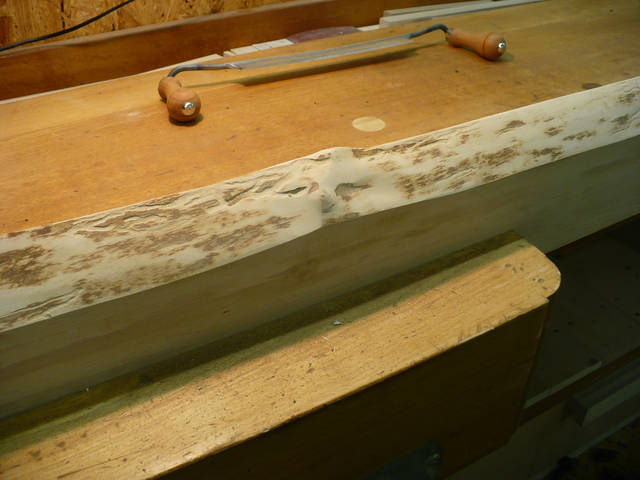 Mit dem Ziehmesser wurden die Naturkanten grob gesäubert – die Feinarbeit erfolgte dann mit der Rotex