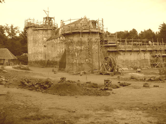 1997 haben ein paar Leute damit begonnen mit den Mitteln (Handwerkszeugen) des 13. Jahrhunderts eine Burg zu bauen. Geschätzt hat man, dass man für die Fertigstellung ca. 25 Jahre benötigen wird. Was ich bei der Besichtigung gesehen habe, hat mich sehr beeindruckt. Bemerkenswert am Projekt Guédelon finde ich nicht nur die handwerkliche Umsetzung, sondern auch die Tatsache, dass als Arbeiter neben den wenigen „Fachleuten“ nur freiwillige Helfer und schwer erziehbare Jugendliche zur Verfügung stehen. Und jeder ist auf jeden bei der Arbeit angewiesen. Auf das, was sie gemeinsam bisher geschafft haben, können sie stolz sein.