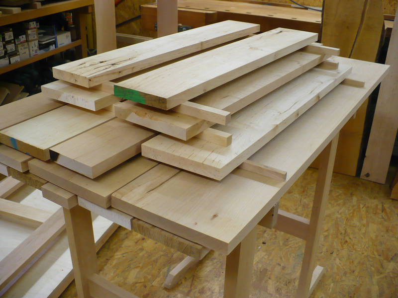 Die gehobelten Einzelbretter warten auf das Verleimen