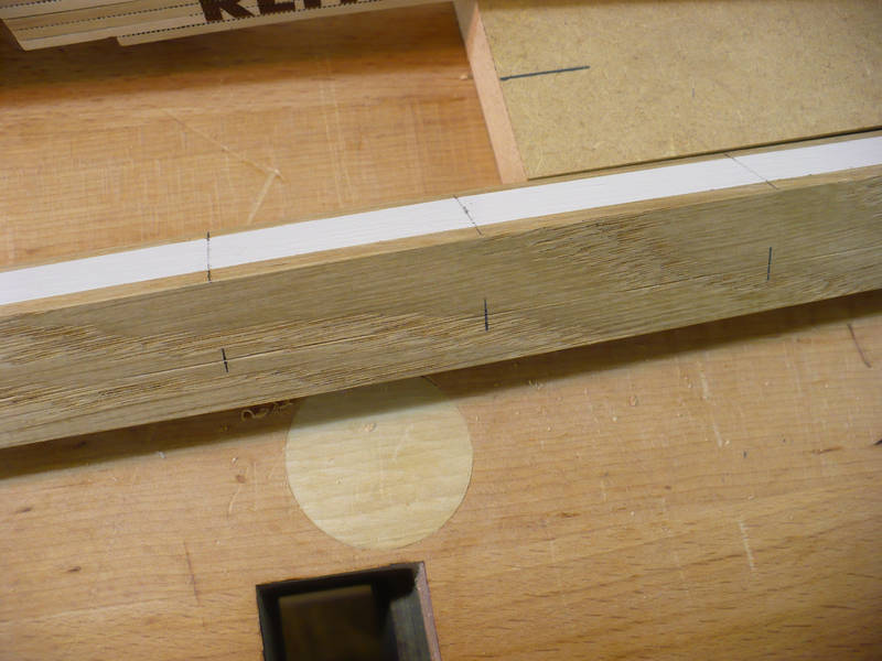 Mit der Ständerbohrmaschine werden an den markierten Stellen 8mm Löcher gebohrt.