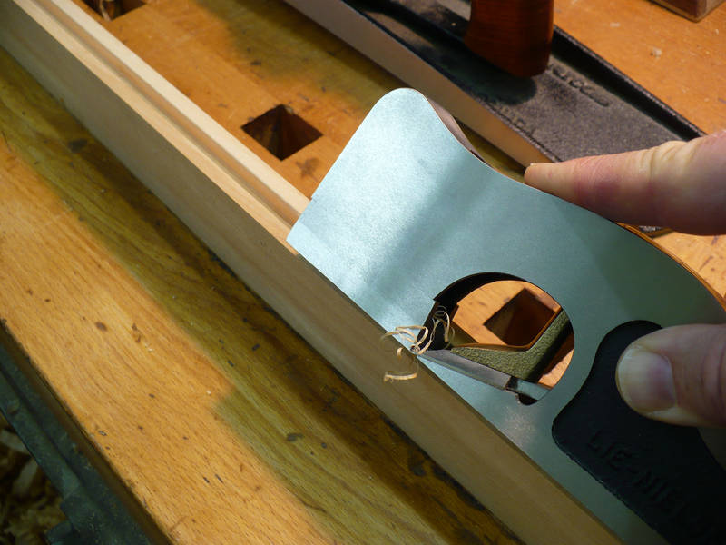 Die Kante der Nut schräge ich mit dem Falzhobel ab. Sieht sauberer aus.