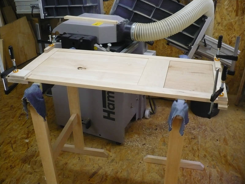 Die Rückwand für den Mittelbereich, der oben offen bleibt und unten einen Schubladenblock erhält.
