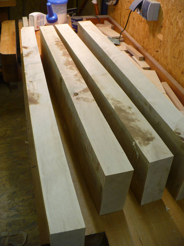 Eine 60 mm starke Hainbuchenbohle wurde zunächst in 14 cm breite Riegel geschnitten.