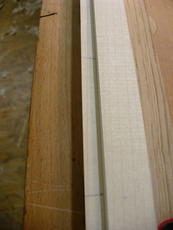 In gleichmäßigen Abständen mache ich mir mit dem Bleistift Striche auf die Fläche wo der Grat gehobelt werden soll. So kann man leicht selbst kontrollieren, dass die Leiste auf der gesamten Länge gleichmäßig gehobelt wird.