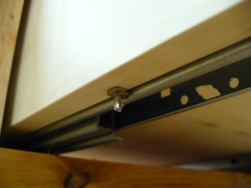 Hier sieht man deutlich die Seitenteile „umschließen“ die Führungsschiene. Die Schublade hat mehr Stabilität in der Führung.