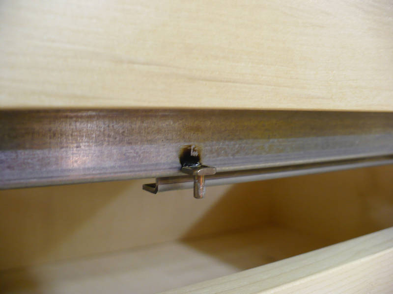 Bei den alten Schubladen hatte ich die Flanken natürlich nicht überstehen lassen. Somit ist die Schublade nur auf den Schienen aufgelegen und hatte keinen seitlichen Halt.