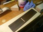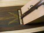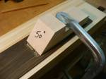 Hergestellt habe ich den Krenov Hobel aus Hainbuche. Das Eisen ist 45 mm breit und vom Gerd Fritsche. Für die Hobelsohle habe ich Pockholz verwendet. Das Eisen habe ich in einen Schnittwinkel von 50° gebettet.