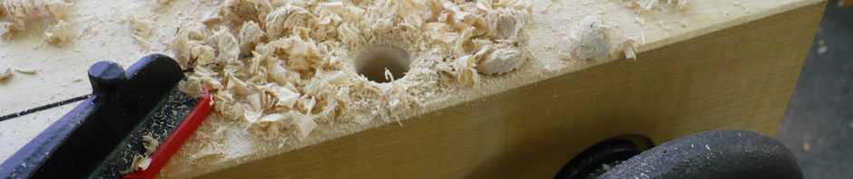 Die beiden Löcher durch die 140 mm hohe Spannbacke, bohre ich mit einem verlängerten Forstner Bohrer.