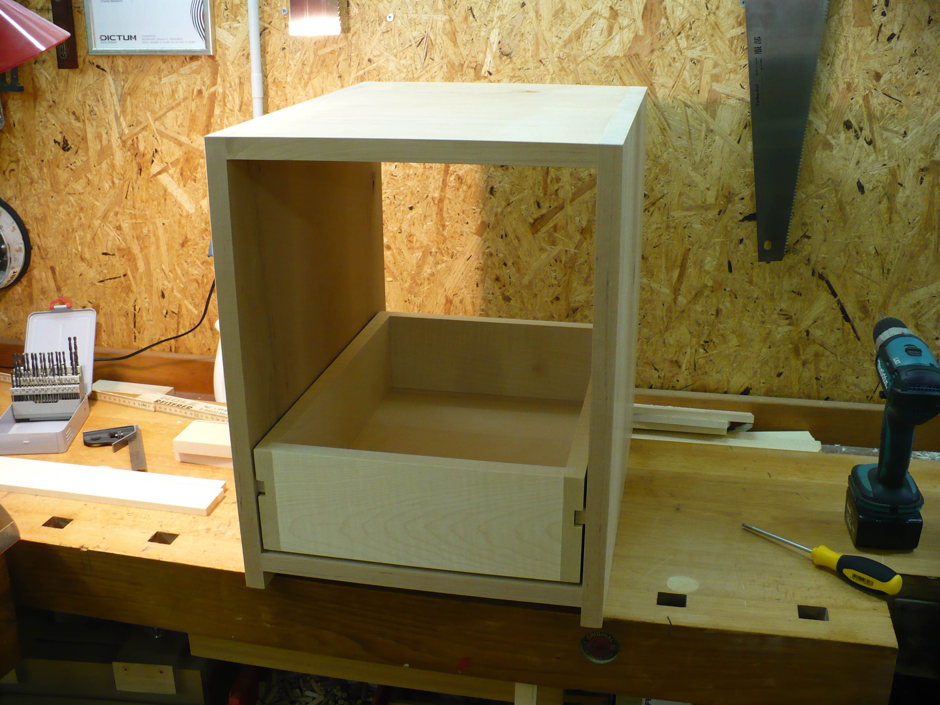 Die Schubladenführungen werden in den Containerschrank montiert
