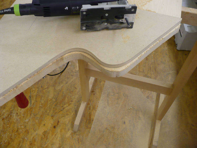 Die Schrankplatte aus Erle wurde dann grob mit der Stichsäge vorgeschnitten