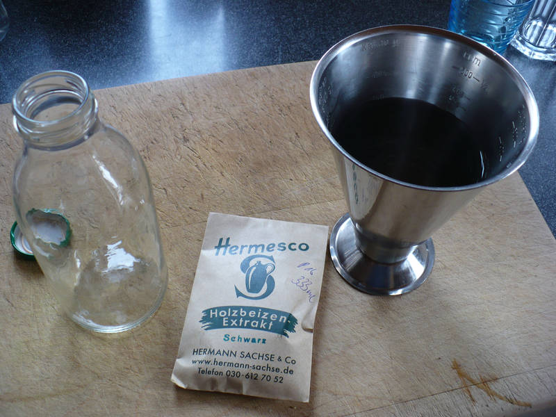 Das Pulver der Beize wird in der angegebenen Menge warmen Wasser aufgelöst