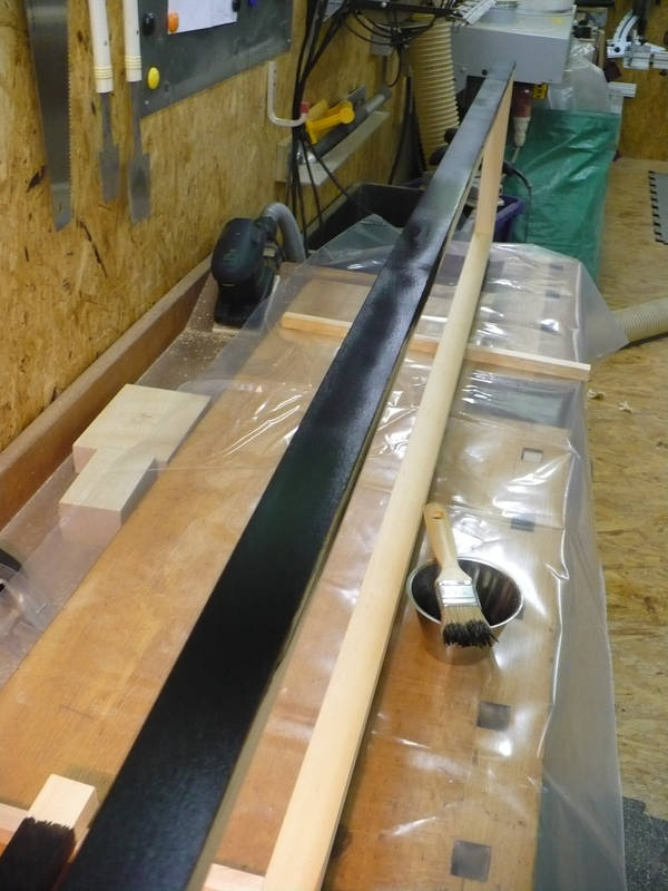 Mit wenigen Pinselstrichen ist der Schranksockel tief schwarz – die Beize deckt prima