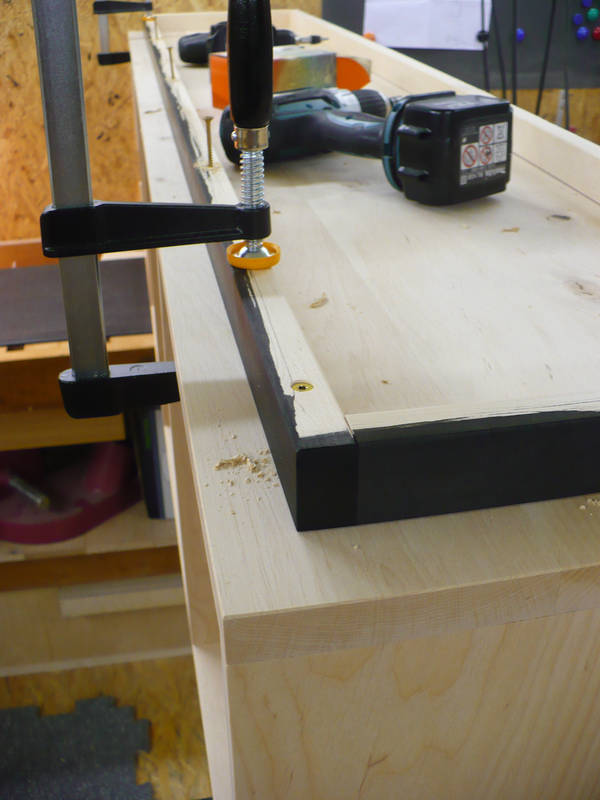 Den Schranksockel wurde mit Schrauben fixiert