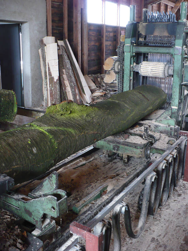 Sägegatter – der Kirschbaum ist nun in „Scheiben“ geschnitten