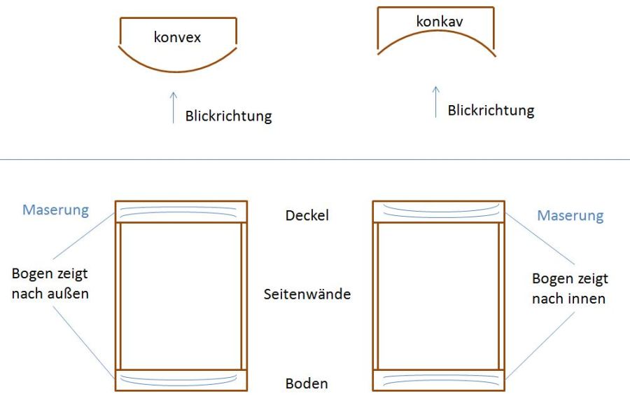 Ursache und Wirkung von konvex und konkav in Verbindung mit dem Maserbild