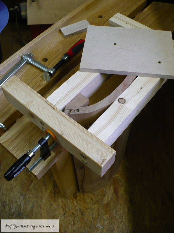 Aus Abfallholz habe ich mir breite Riegel gehobelt und um die gewölbte Türe ein Rechteck zusammengeschraubt.