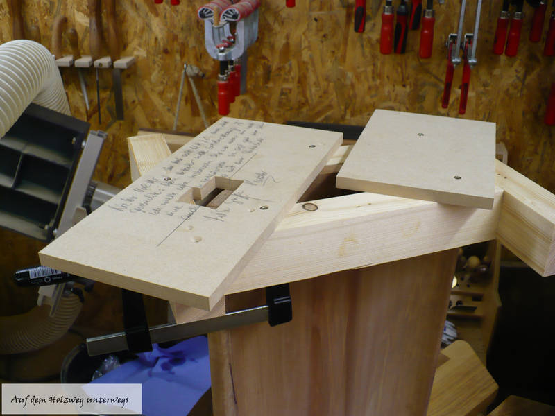 Die Schablone wird auf den Rahmen geschraubt. Somit ist das eine stabile Angelegenheit zum Fräsen