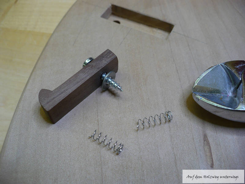 Die Feder habe ich halbiert und durch den Haken ein kleines Loch gebohrt.