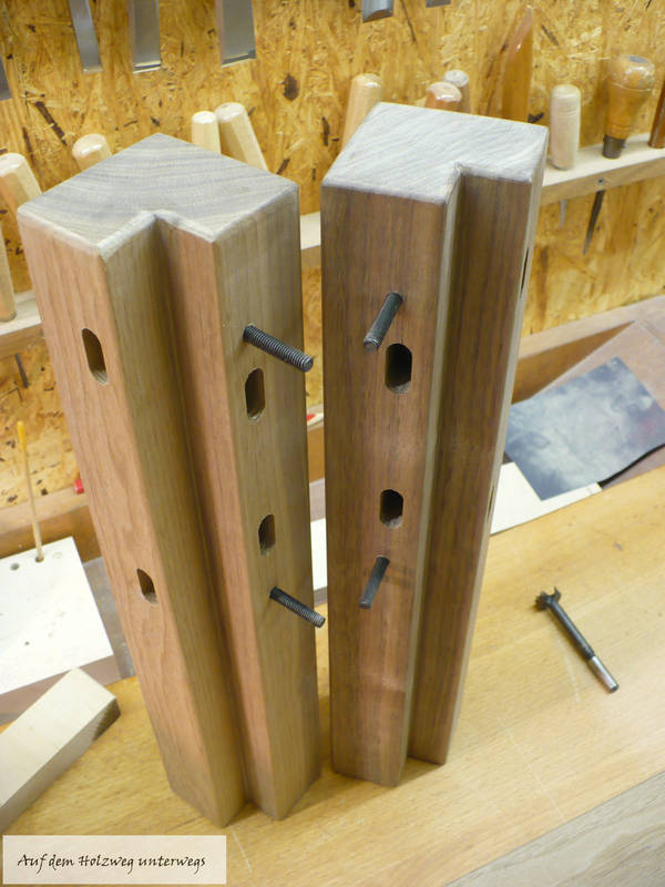 Die Bettfüße sind fertig. Alle notwendigen Löcher gebohrt.