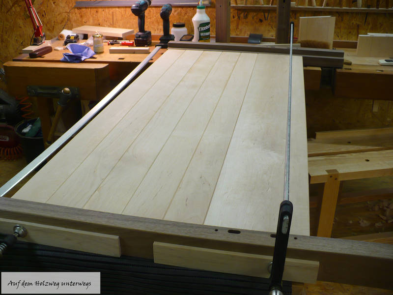 Der Bettspiegel wird mit den Füßen verleimt