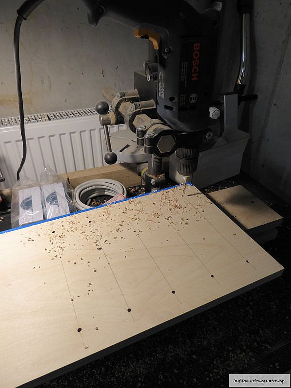 Die Löcher werden durch die Schablone gebohrt