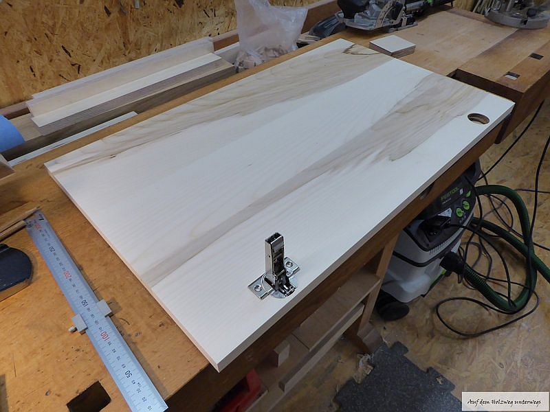 Das Topfscharnier sitzt dann im richtigen Abstand zur Türkante