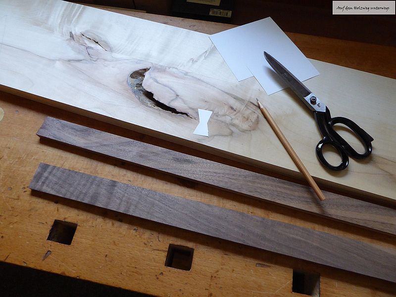 Damit ich ein Gefühl für die notwendige Größe der Inlays bekomme hab ich erst mit Papier gebastelt.