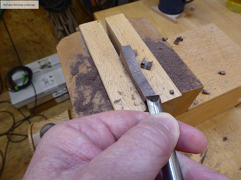 Die Flanken werden wie bei Schwalbenschwanzzinken genau im Winkel von 90° gesäubert