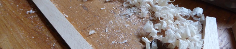Nach dem Rahmen, habe ich meine Aufmerksamkeit der Füllung gewidmet. Die Bretter hatte ich auf ca. 8 mm gehobelt. Die mussten verleimt werden. Das geht am besten mit kleinen Keilen. So versucht das Brett nicht sich der Schraubzwinge „entgegenzustrecken“. Die Keile hab ich mir aus Buchenresten gefertigt.