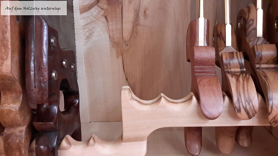 ein sehr schöner Sägeschrank, ich finde v.a. die runden Formen der Sägehalterungen sehr gelungen. Auch die überstehenden Zinken sind ein Hingucker – ein tolles Stück. Danke fürs Teilen!