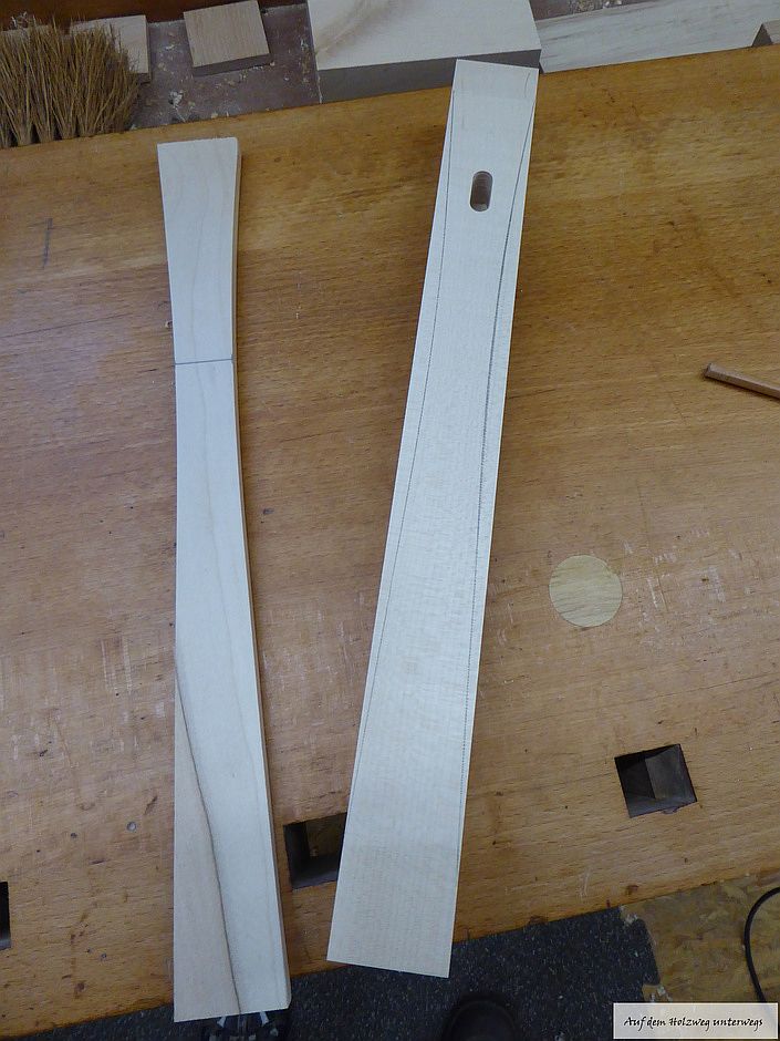 Wichtig die Zapfenlöcher sollte man unbeding vor dem Aussägen der Beine bohren oder stemmen. Sonst hat man keine ebene Referenzfläche mehr.