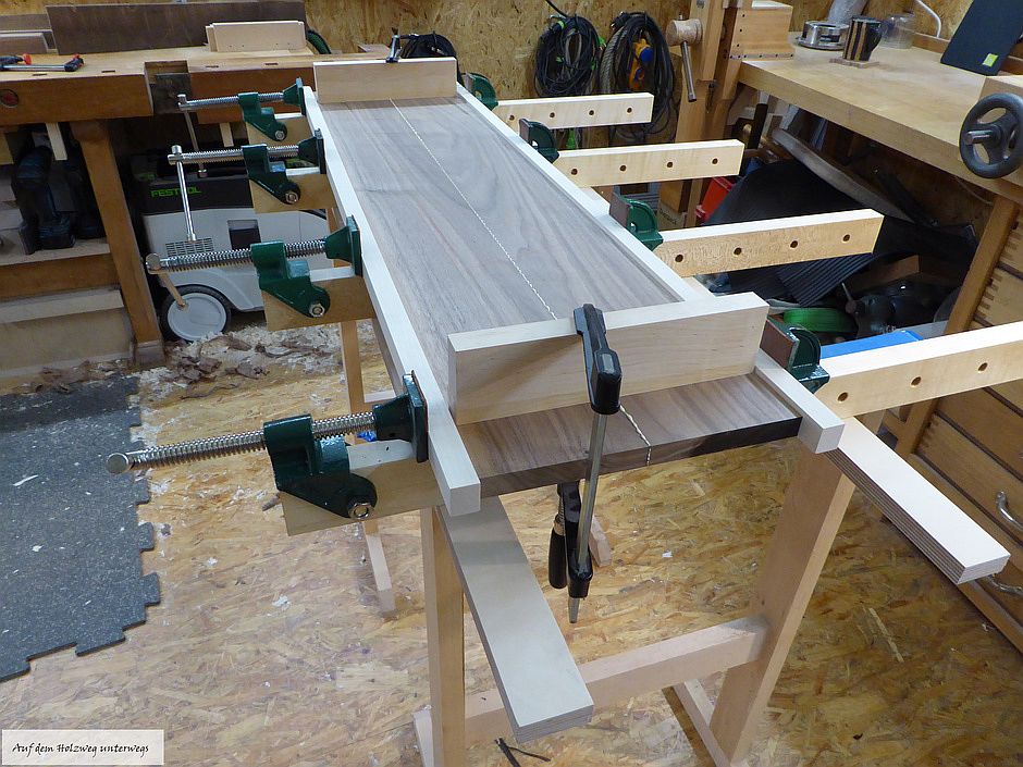 Nur je die beiden Hälften werden miteinander verleimt. So hab ich später 2 Platten mit je 25 cm Breite