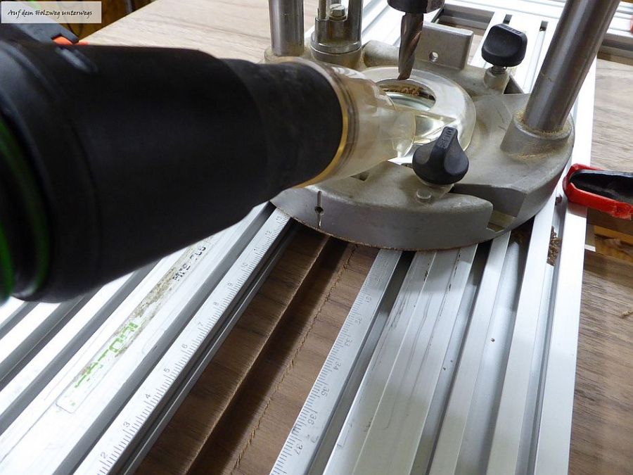 Die erste Nut fräse ich mit dem Spiralnutfräser