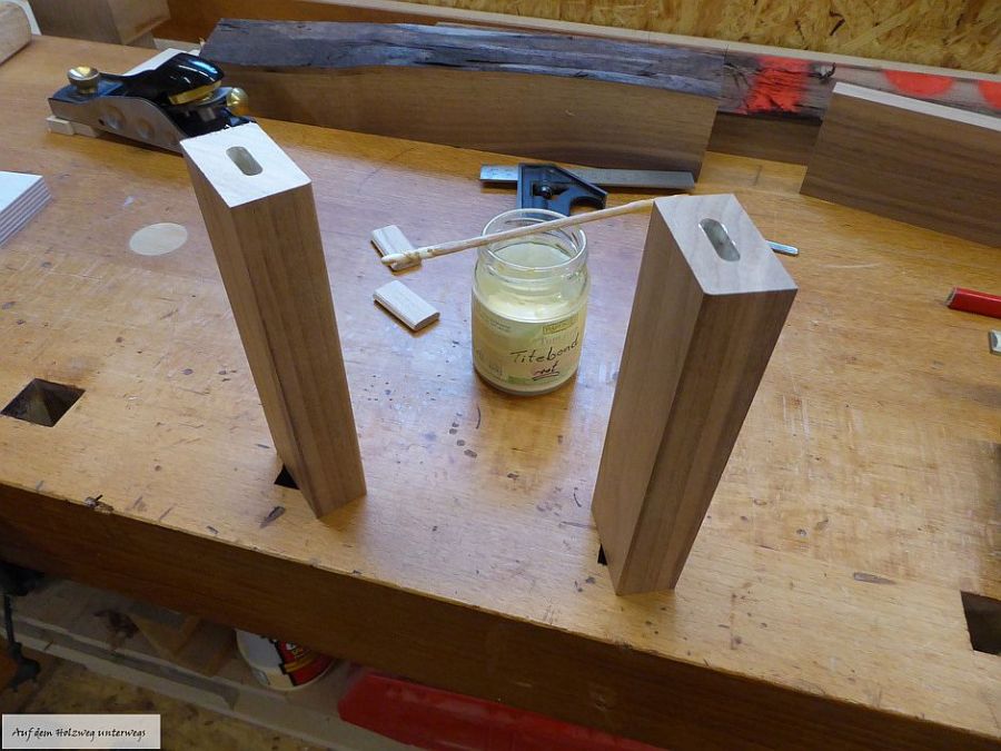 Während der Leim trocknet, mach ich Halteklötze für die Tischplatte