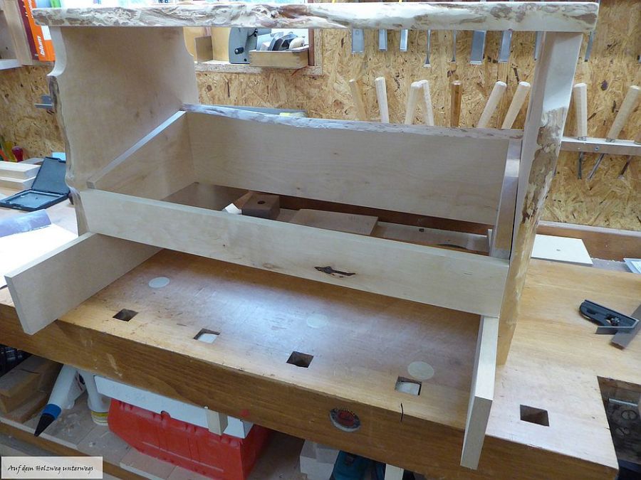 Nach dem Zuschnitt und dem Einpassen. Das schönste Stück hole ich natürlich gut sichtbar nach vorne!