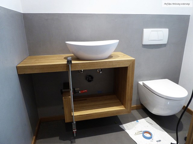 Bereits 2016 hatte ich konkrete Vorstellungen, wie unser zukünftiger Waschtisch aussehen sollte. Um Tatsachen zu schaffen, begann ich damals mit dem Bau, obwohl ich wusste, es wird noch mindestens ein Jahr dauern, bis die Renovierung startet.