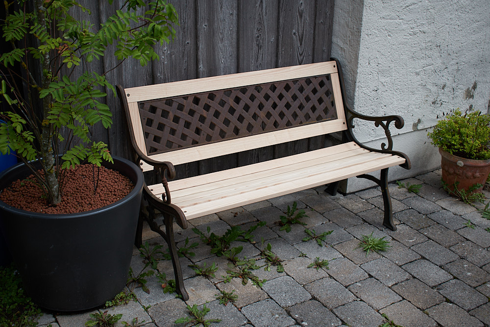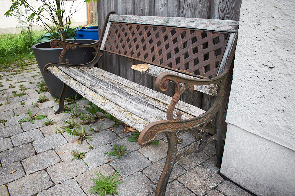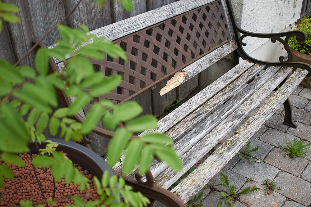 Das Leben hinterlässt Spuren – auch bei einer Gartenbank. Zeit für etwas Wellness!