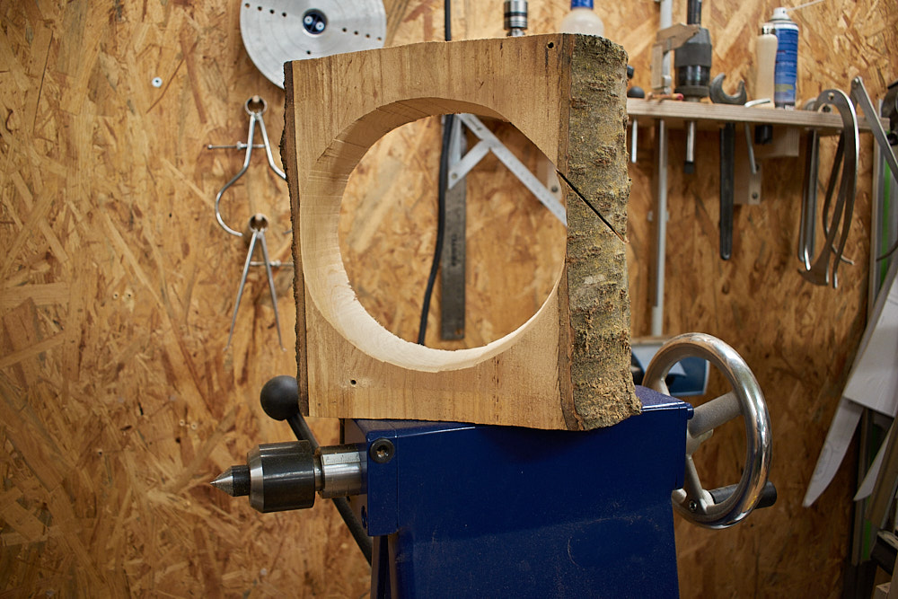 Das Ding war schon in der Brennholzkiste. Abfall! Hatte einen Drechselrohling ausgesägt. Was mich geritten hat, es wieder rauszuholen, weiß ich nicht. Ab und an huschen so Ideen vorbei. Sie lenken ab…. Schwups, schiebt man was ein, was nicht auf dem Zettel stand. Mahl ehrlich: Ist das wichtig, was auf dem „Zettel“ steht?