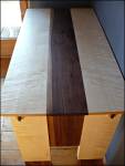 Schublade aus Ahorn – Front aus Nussbaum. Sichtbare Schwalbenschwanzverbindung.